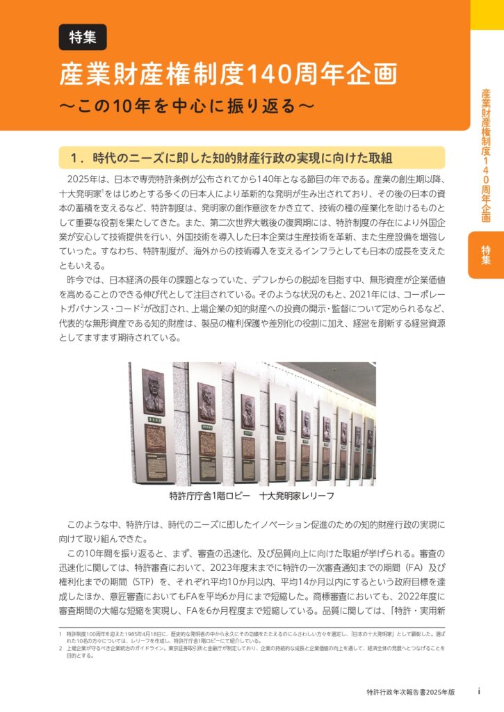 2025年は、日本の特許制度の礎となった「専売特許条例」が1885年に公布されてから140年にあたる年です。「特許行政年次報告書2025年版」でも、この140周年を機に、特許庁による審査迅速化・品質向上の取り組みが特集されています。
